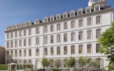 Cette réalisation d’exception mêle l’ancien et le neuf au coeur d’un jardin paysager et bénéficie d'un emplacement de premier choix en plein coeur de ville. L’immeuble ancien est réhabilité en 33 appartements (du studio au T5), dans le respect de l’histoire du bâtiment. Les volumétries historiques sont retrouvées et l’intégralité des éléments remarquables sont mis en valeur (verrière, fontaine, corbeaux et corniches, balustres ou encore escaliers).